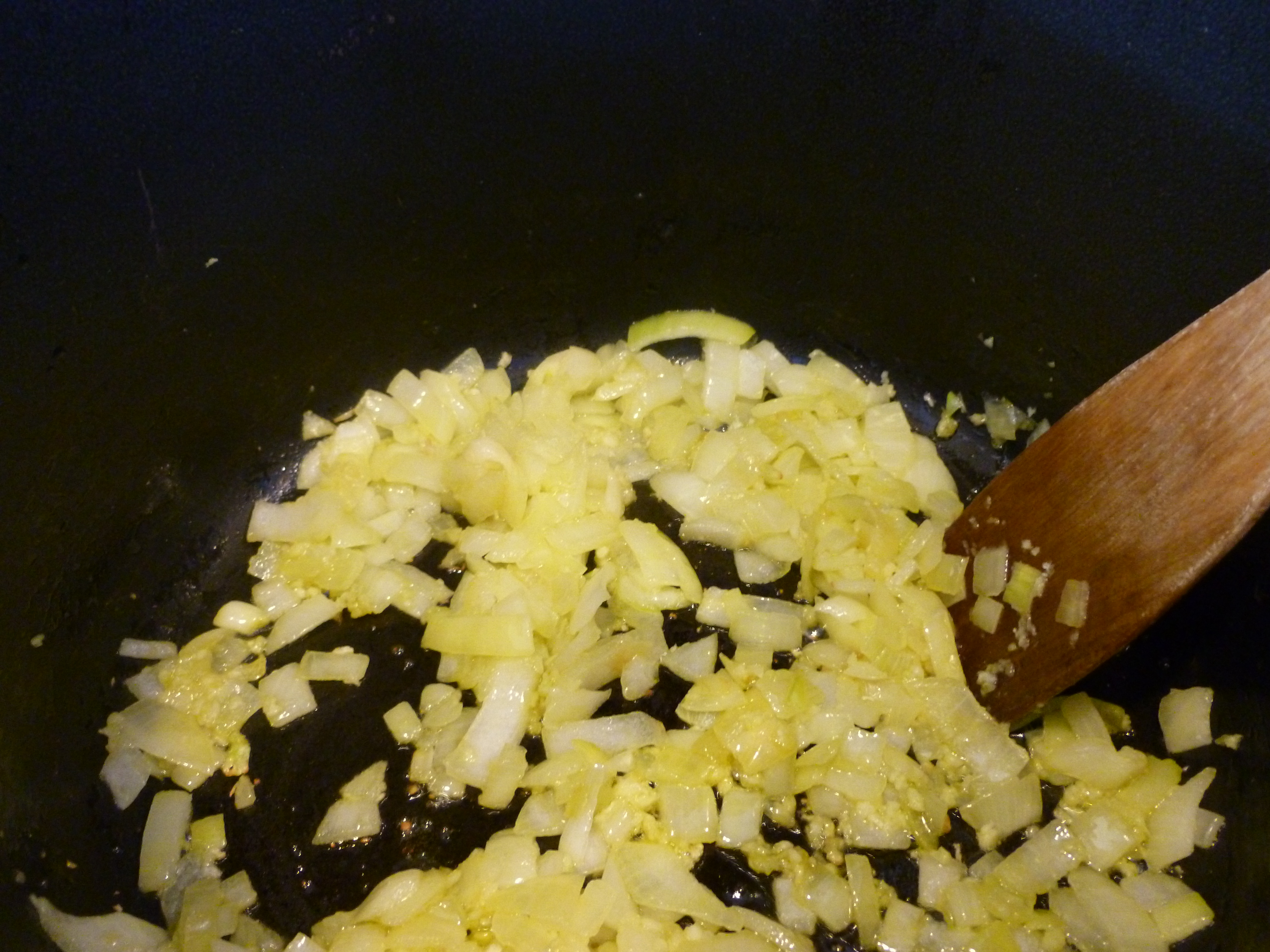 - Onions and garlic sauteeing
