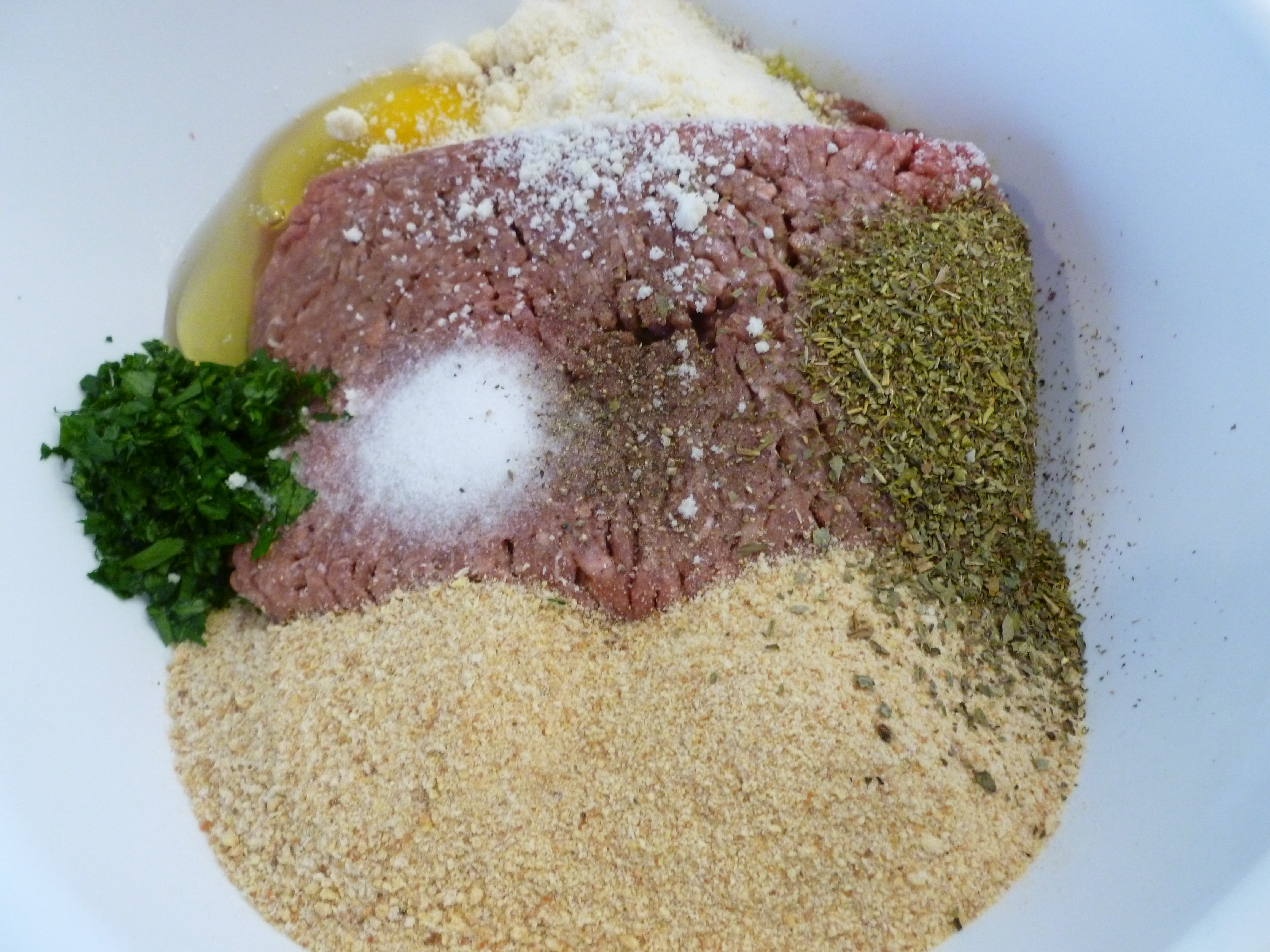 - Using a large mixing bowl, add all the ingredients and thoroughly mix using your hands. I sometimes add olive oil if the mixture is too dry/firm.