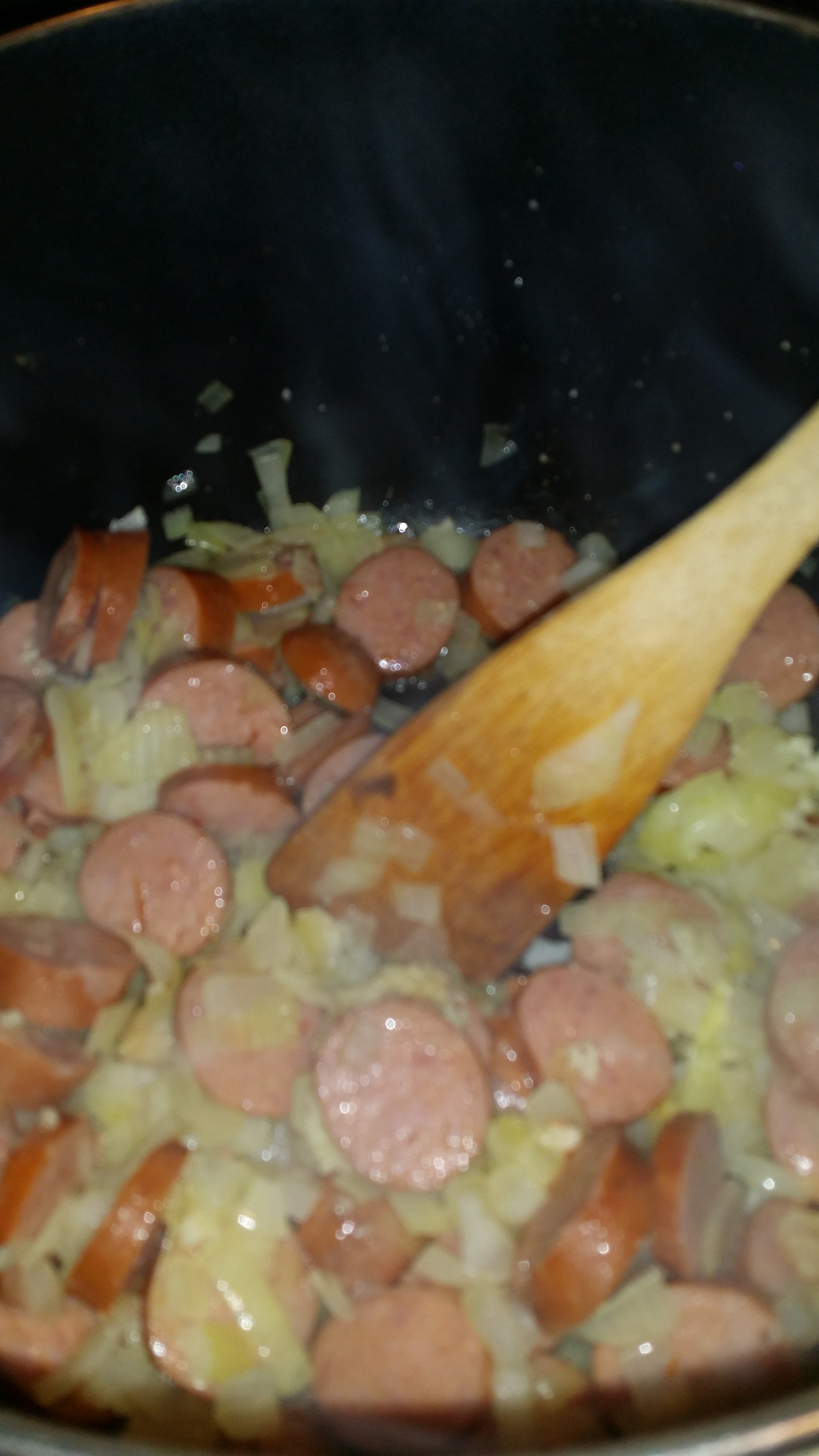 - Saute onions and sausage